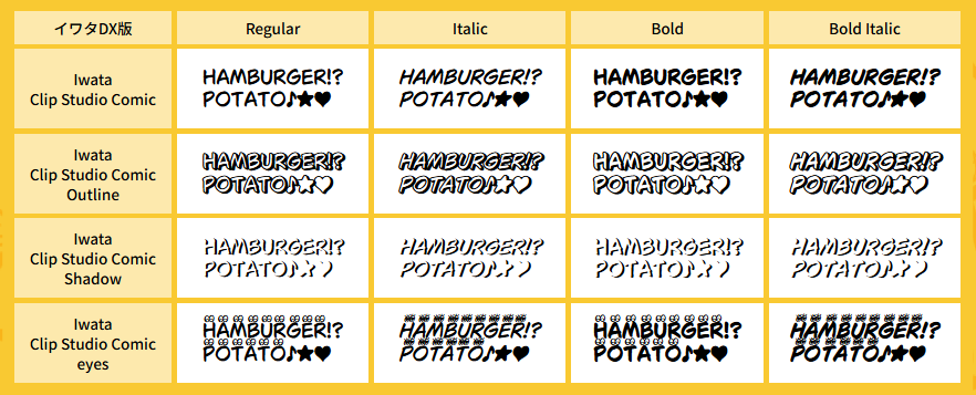 Iwata Clip Studio Comic Regular / Italic / Bold / Bold Italic